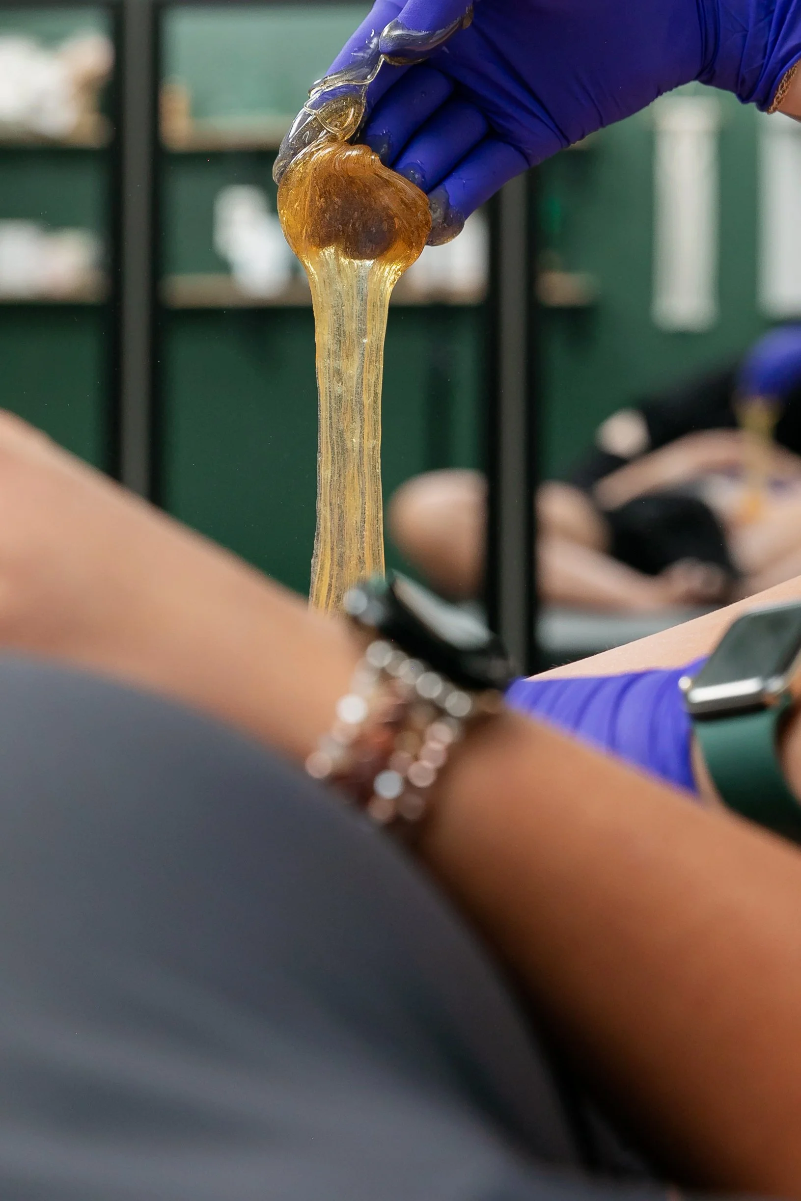 Sugaring is an ancient method of hair removal using a paste consisting of sugar, lemon, and water. This natural form of hair removal can be a great option for people with sensitive skin as it is gentler than traditional waxing. The paste is molded onto the skin and removed with a swift flick motion.